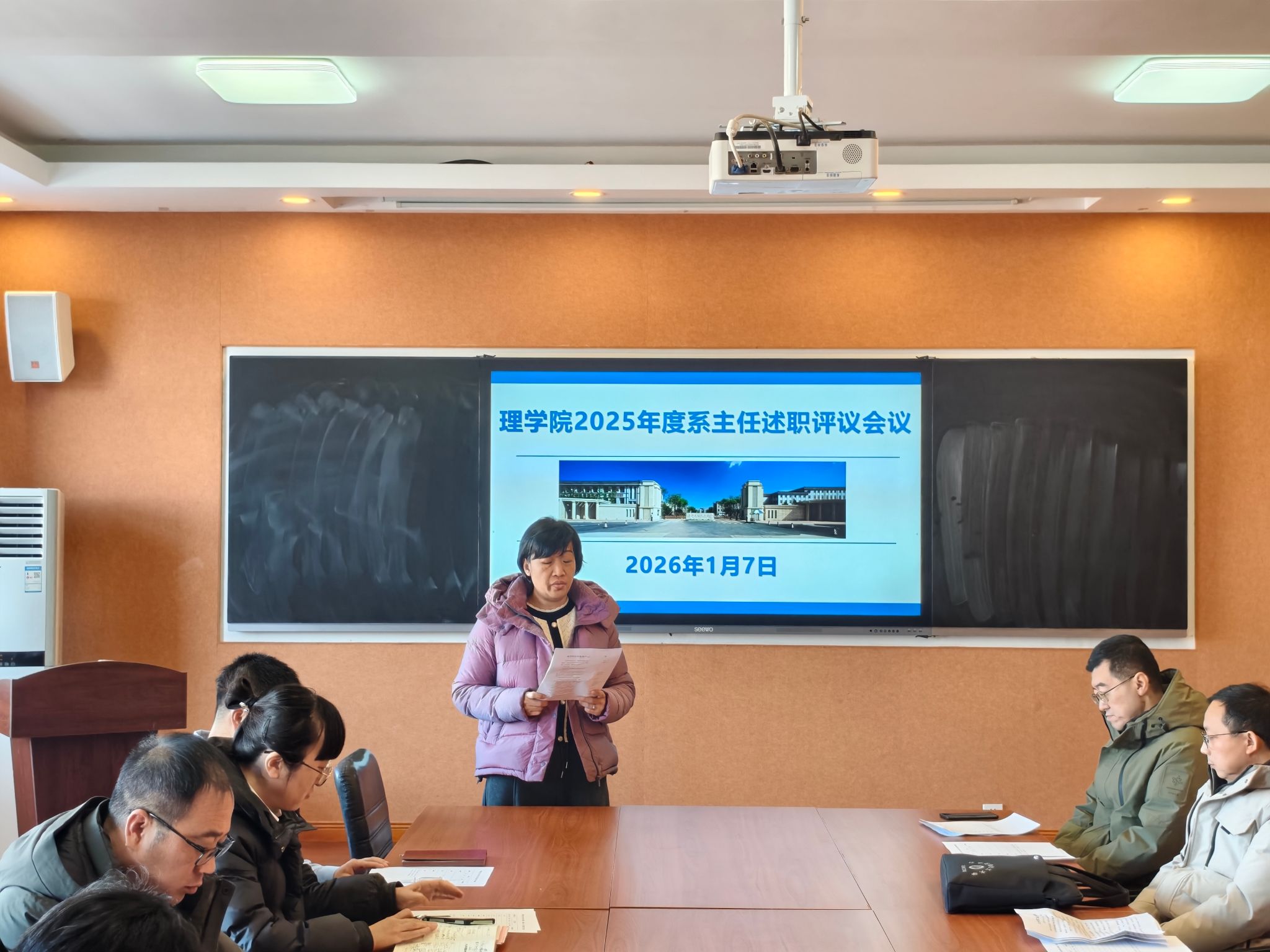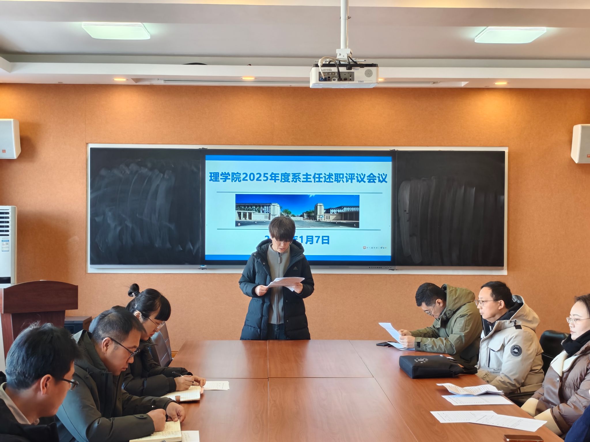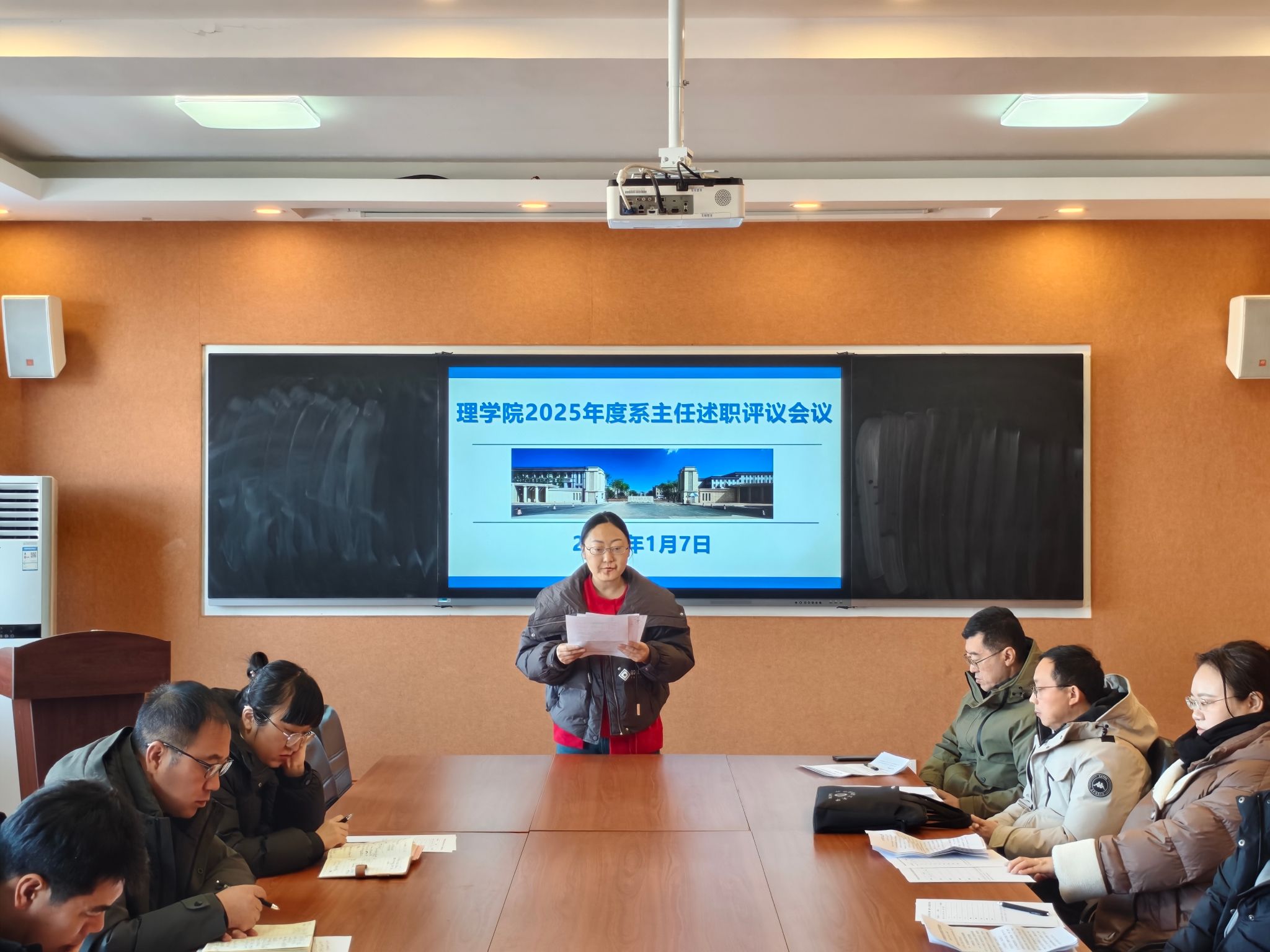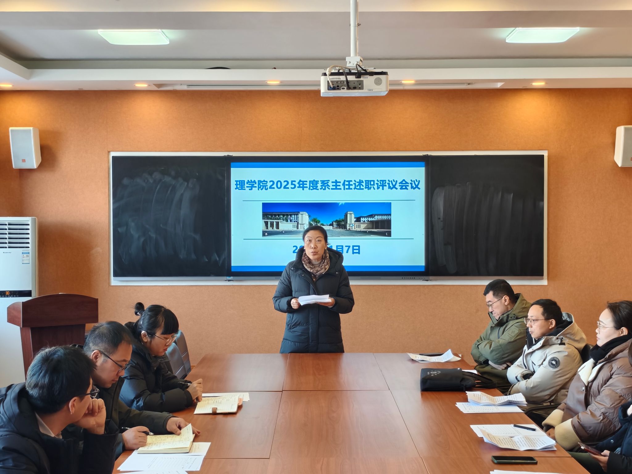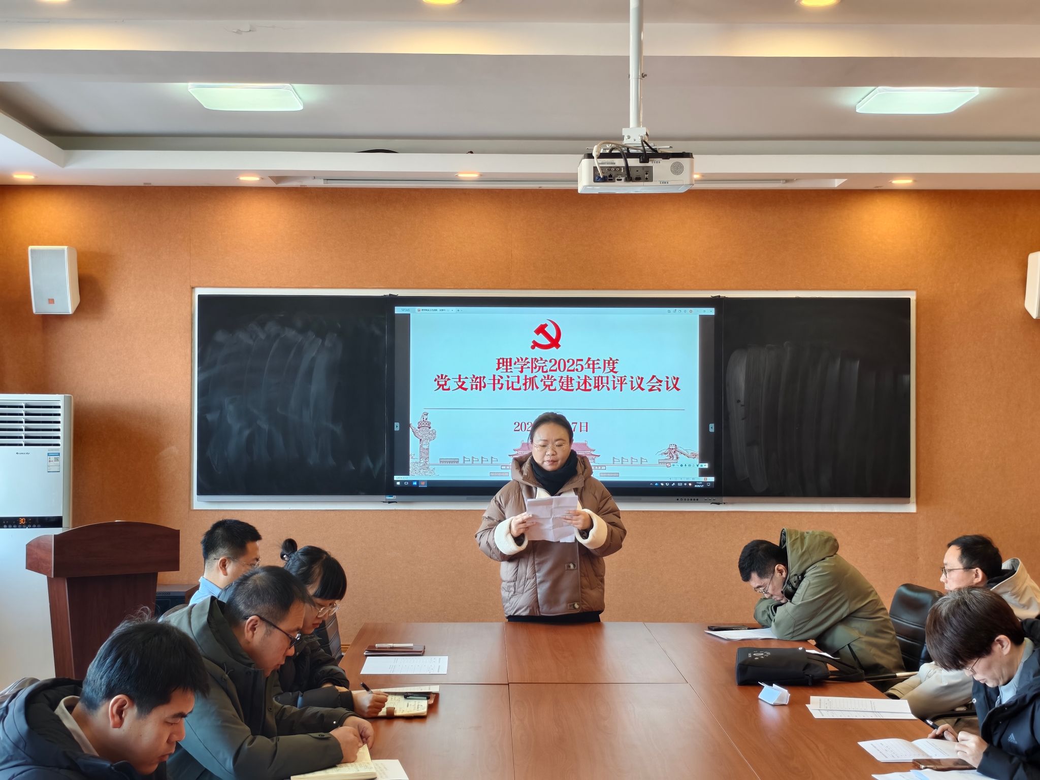 为深入学习贯彻党的二十届四中全会精神,进一步加强基层党建工作,强化各党支部书记履行党建工作“第一责任人”职责,2026年1月7日上午,理学院于409会议室召开2025年度党支部书记抓党建述职暨系(教研室、实验中心)主任评议会。学院全体党支部书记、系(教研室、实验中心)主任参会,会议由学院党总支书记陈雪峰主持。